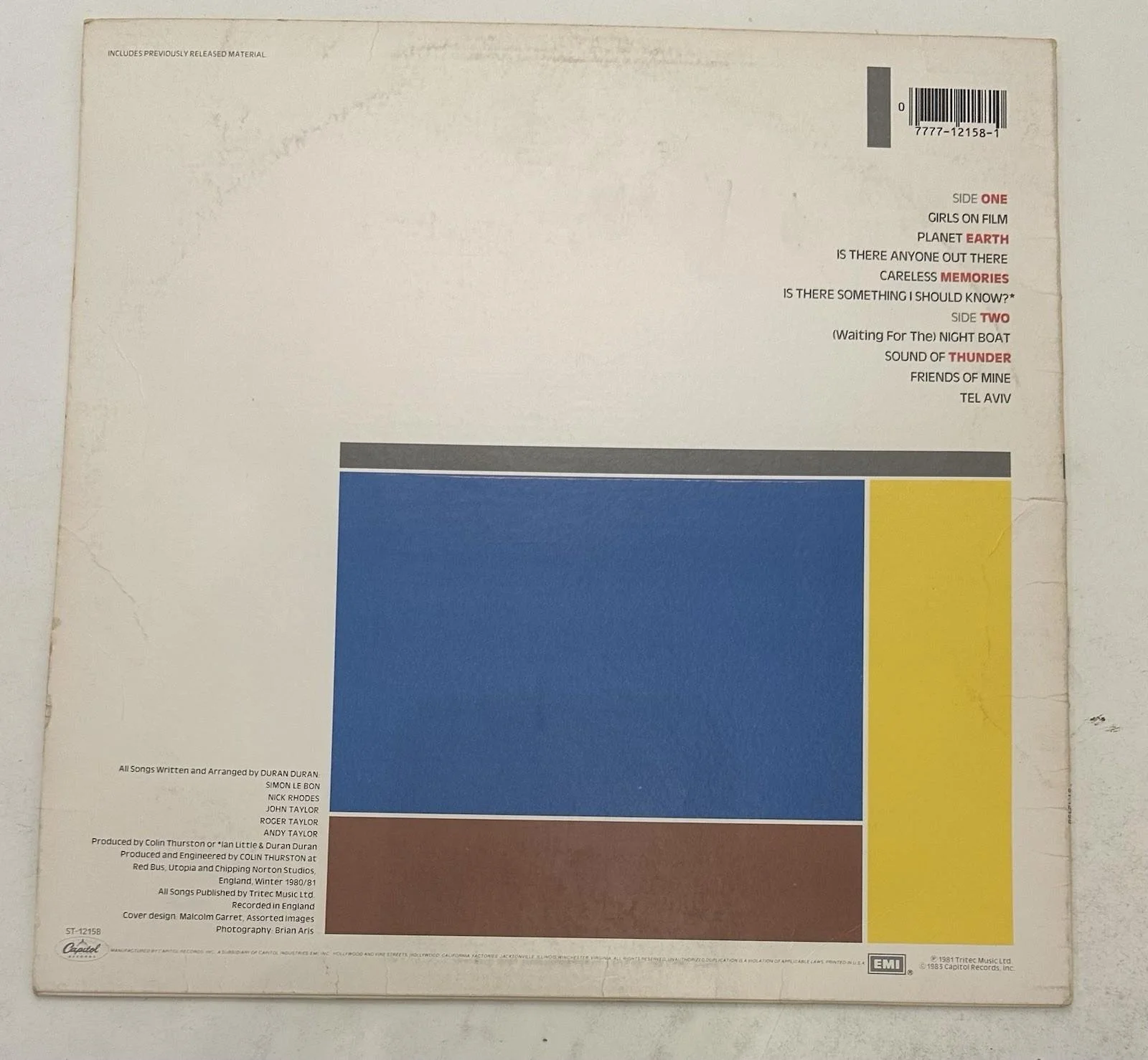 Duran Duran ‎– self titled Capitol – ST-12158 LP, US 1983 •